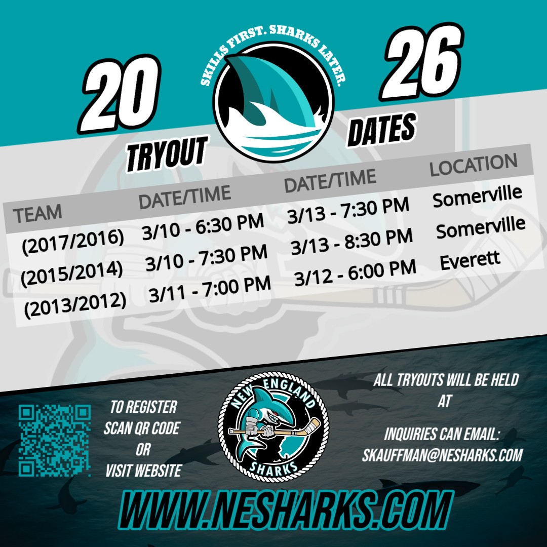 All tryouts will take place at Veterans Memorial Rink in Somerville.